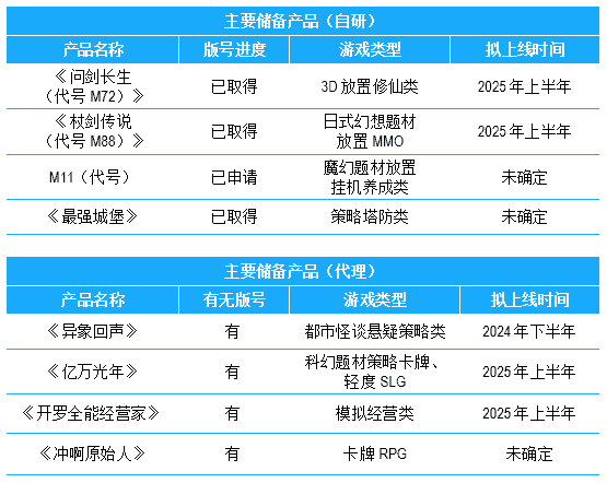 公司储备多款新品,,期待为玩家解锁更多新鲜体验,,部分产品如下表所示:::