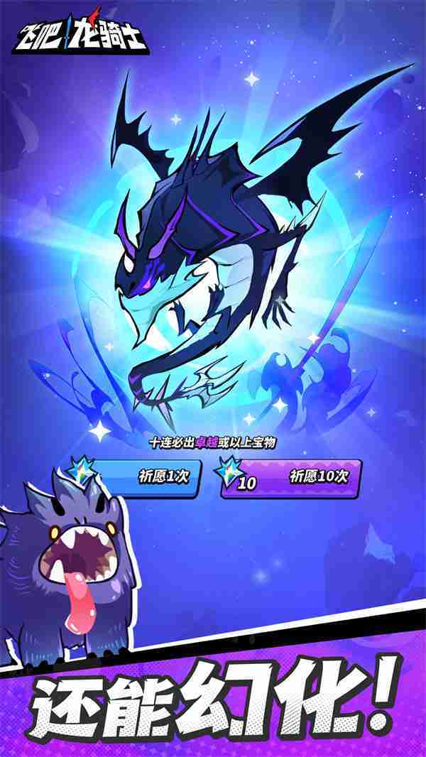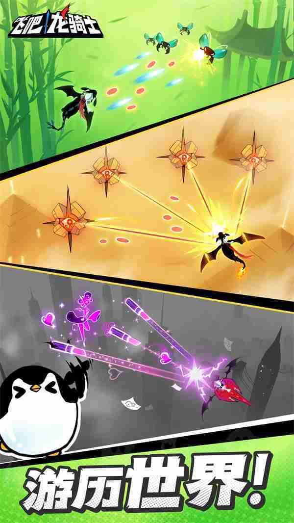 《飞吧龙骑士》是一款集合了飞行弹幕射击、、、、Roguelike要素和挂机养成的休闲手游,,,极具创意的吞食子弹反击玩法,,,,突破传统飞行射击的刻板限制,,带来了独特的爽快清屏体验。。。